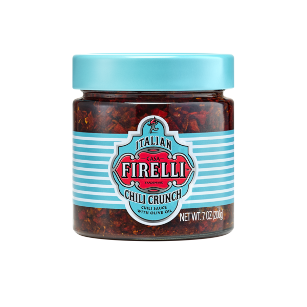 Casa Firelli Chili Crunch - die perfekte Mischung aus Würze und Crunch. Medium scharf, hergestellt aus kalabrischen Chiliflocken und Italienischem extra Virgin Olivenöl. Perfekt zum würzen von Pizza. Pasta, Grillfleisch und Eispeisen.